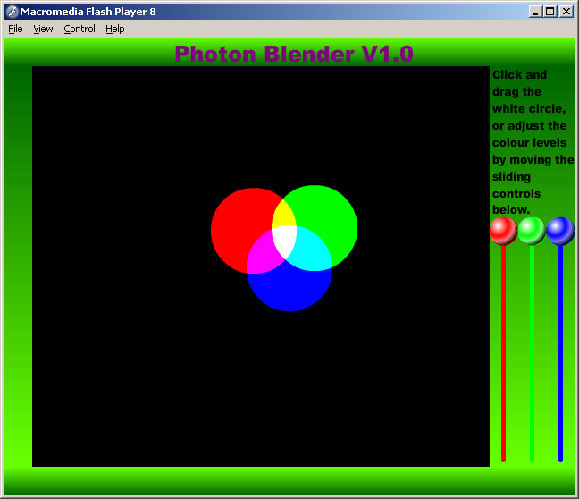 ![]() | Photon Blender is designed to demonstrate the interaction of Red light, Green light and Blue light. |