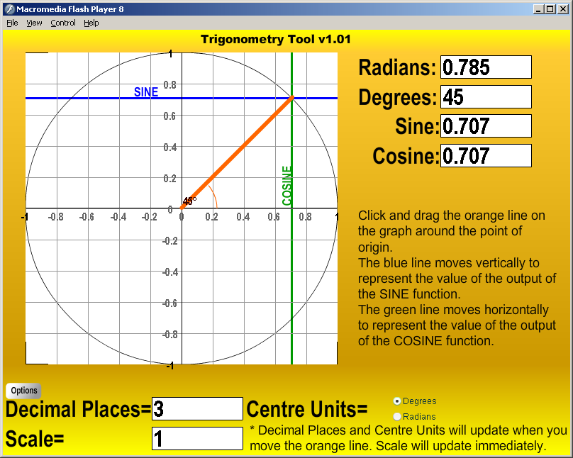 ![]() | Trigonometry Tool is designed to demonstrate how Sine and Cosine are derived from an angle and a circle. |